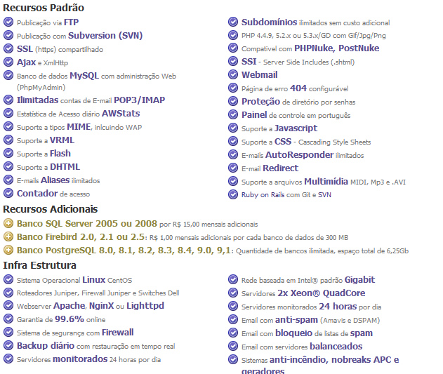 - Backup diário do conteúdo Web, banco de dados e e-mails;